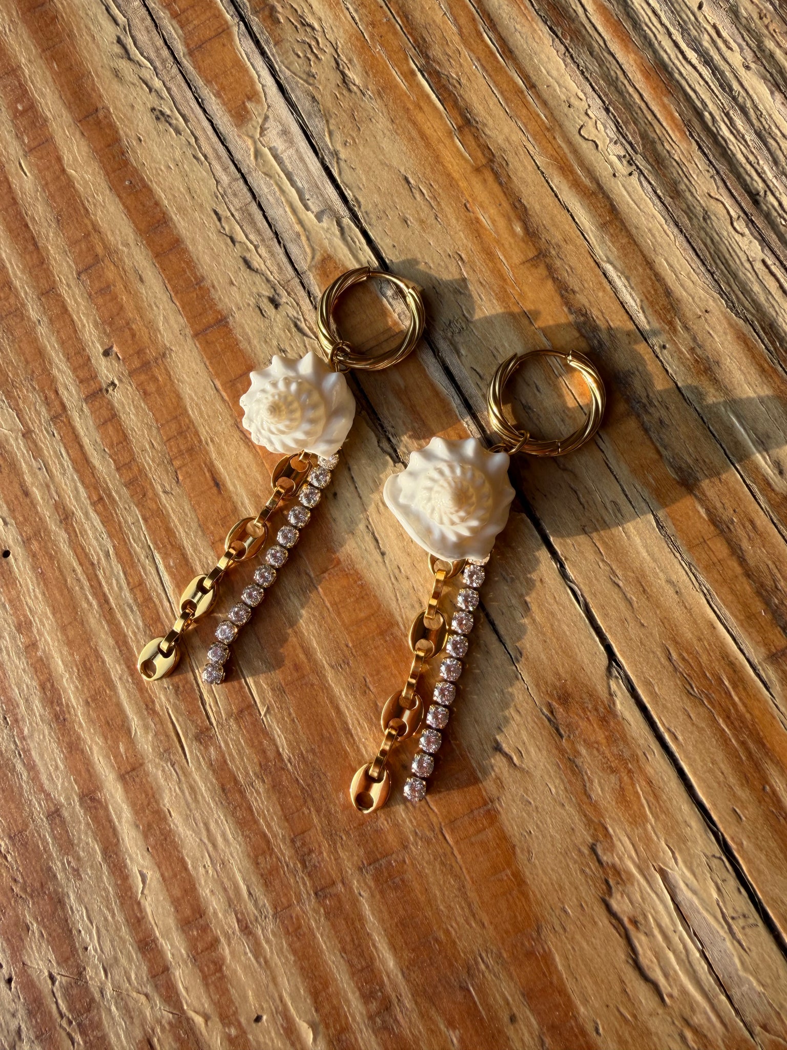 Boucle d'oreilles en acier inoxydable 316L, et coquillage véritable.